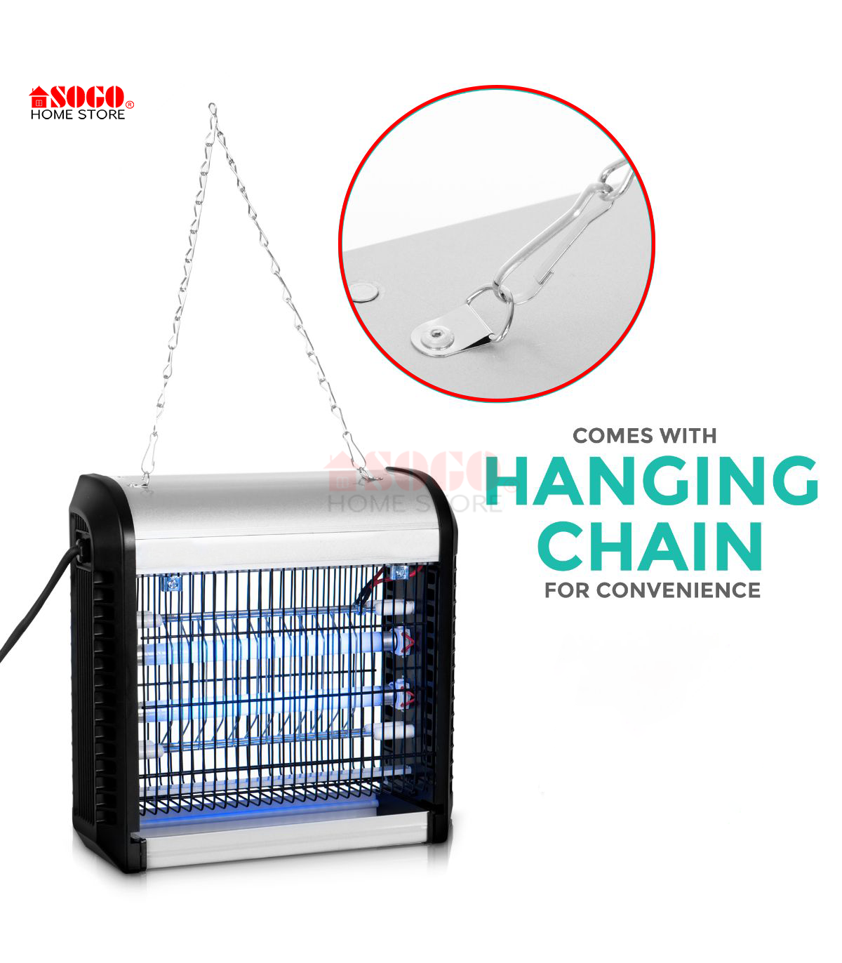 • CHAIN FOR EASY HANGING.
