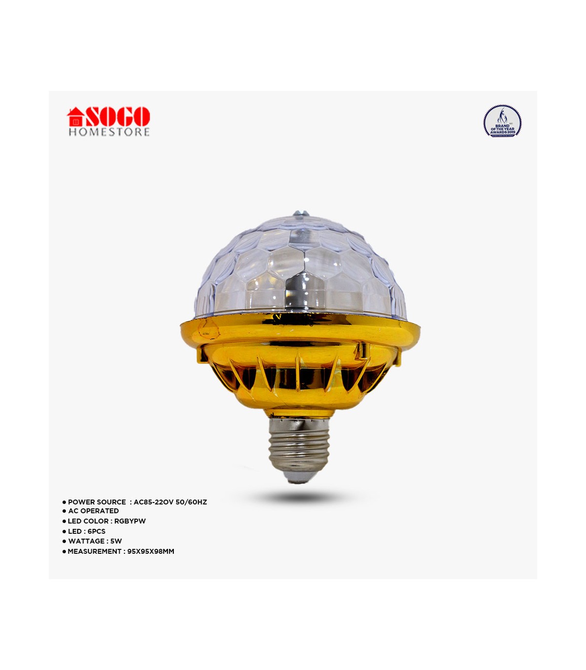 Sogo Revolving UFO Style 6 LED Bulb (E27) Screw Type